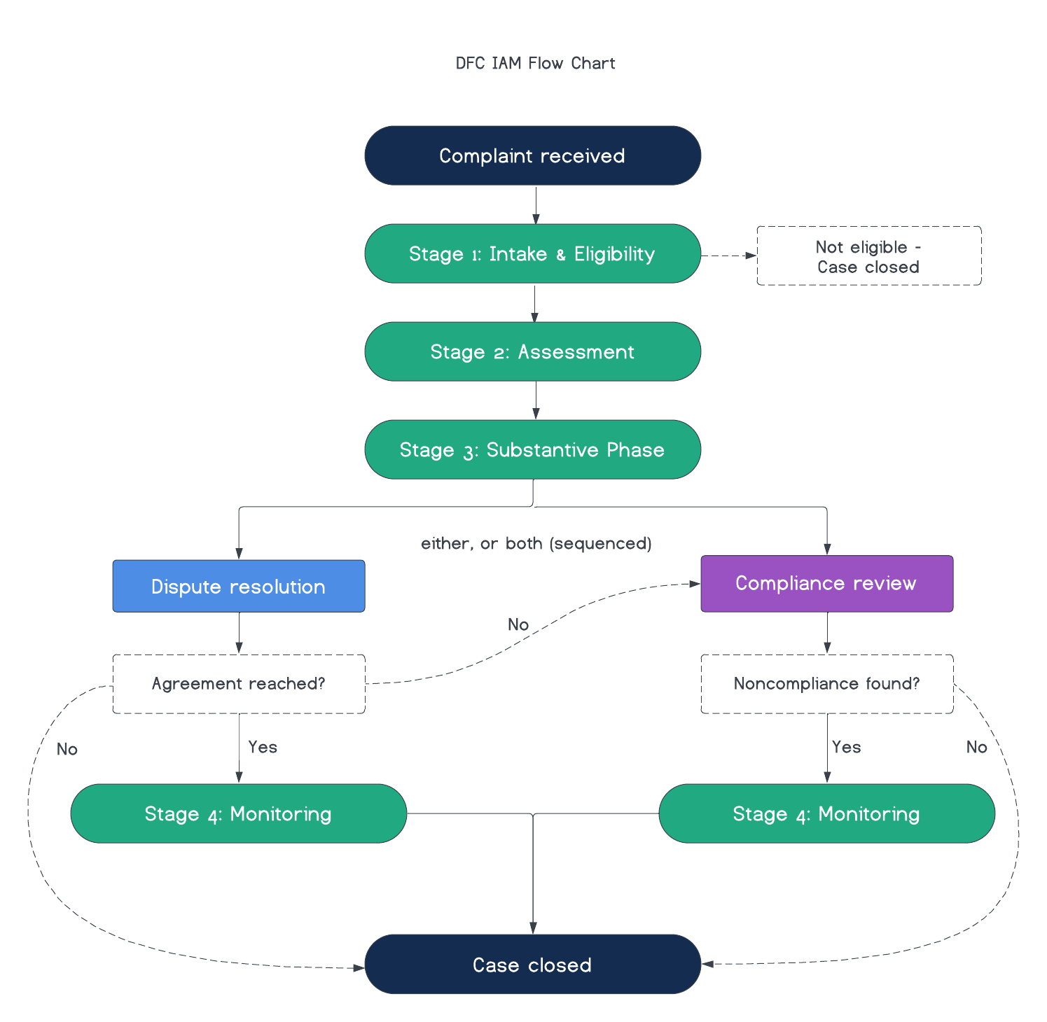 The DFC-IAM makes the final decision on eligibility. If your complaint is deemed eligible, IAM will proceed to the assessment stage and post a summary of the complaint publicly unless confidentiality is requested.